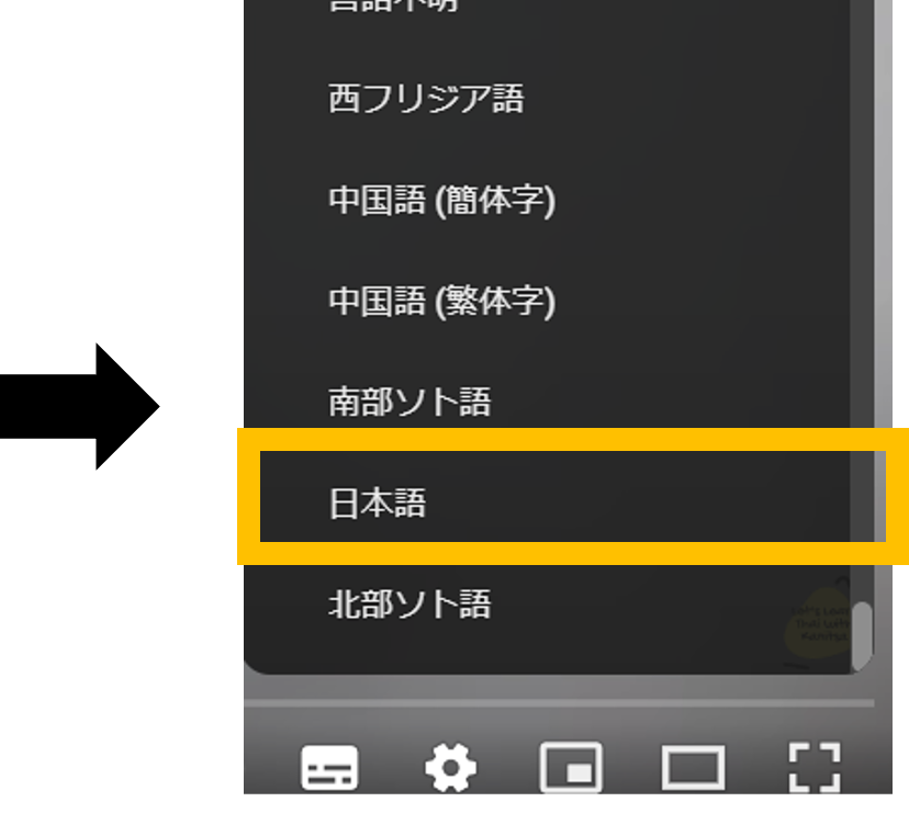 ACCU YouTube字幕設定方法(タイ語→日本語) YouTube字幕設定方法(タイ語→日本語) 以下の方法でYouTubeの字幕を日本語に設定してご覧ください! 1.設定(歯車)ボタンを押し、「字幕」を選択 2.「自動選択」を選択 3.「日本語」を選択