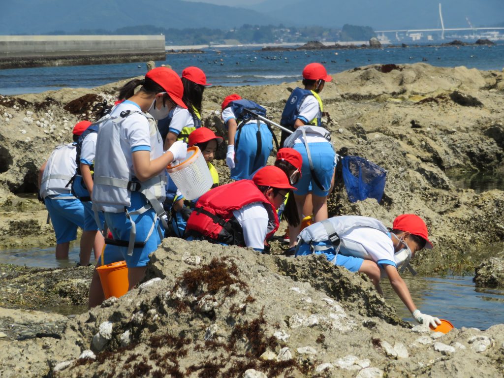 | ・学校全体で系統付けた海洋教育の推進 面瀬川を学びの核として、低・中・高学年の発達段階に応じて学習内容を系統化し、川から海、さらに地域の未来へと学びが発展する教育課程を構築している。 ・学びのフィールドが広がっていく探究的な学習構成 校内のビオトープや面瀬川での体験を起点に、岩井崎、水産業の現場、造船所見学へと学習の場を広げることで、実感を伴った探究を目指している。 ・教科横断的に自然環境のつながりを捉える実践 理科の川や生き物の学習と、社会科の水産業・地域産業の学習を関連付けることで、川から海へと続く自然環境と人間の営みの関係を、子供たち自身が主体的に理解できるように工夫している。 ・地域と協働した実感的な海洋保全教育 地域の方や専門家との関わりを通して、環境を守る取組や産業を支える人々の思いに触れ、持続可能な海と地域の未来について自分事として考え、行動につなげる学びに取り組んでいる。 |