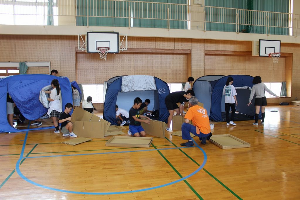 高学年では、探究・発信・地域貢献をテーマとした高度な活動を展開した。第5学年は世界遺産である三池港の調査を行い、直面したゴミ問題の解決に向けて「啓発新聞」を作成・発信した。この活動は、地域の魅力を再発見するとともに、環境保全を強く訴える主体的な姿勢を養うものとなった。第6学年では、海洋教育での学びを土台に、さらに一歩進んだ「防災・減災教育」を実施した。過去の豪雨災害の事例から自然の脅威を再認識し、簡易テントの設営やハザードマップを用いた地域特性の確認を通して、自分たちの住む地域の危険性と避難行動の重要性を具体的に把握した。